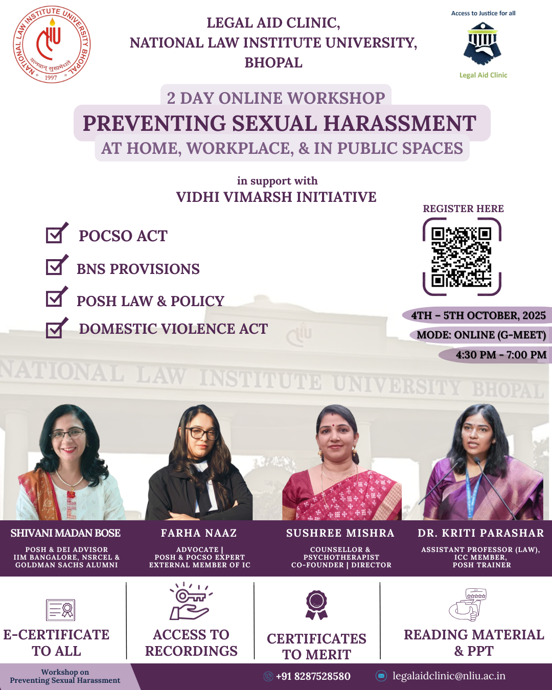 - 2 Day Online Workshop, Preventing Sexual Harassment At Home, Workplace, & In Public Spaces, 2025.