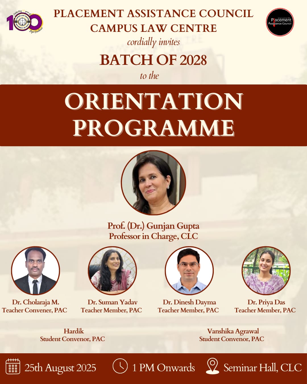- Executive Committee (2025-26) of the Placement Assistance Council, Campus Law Centre.