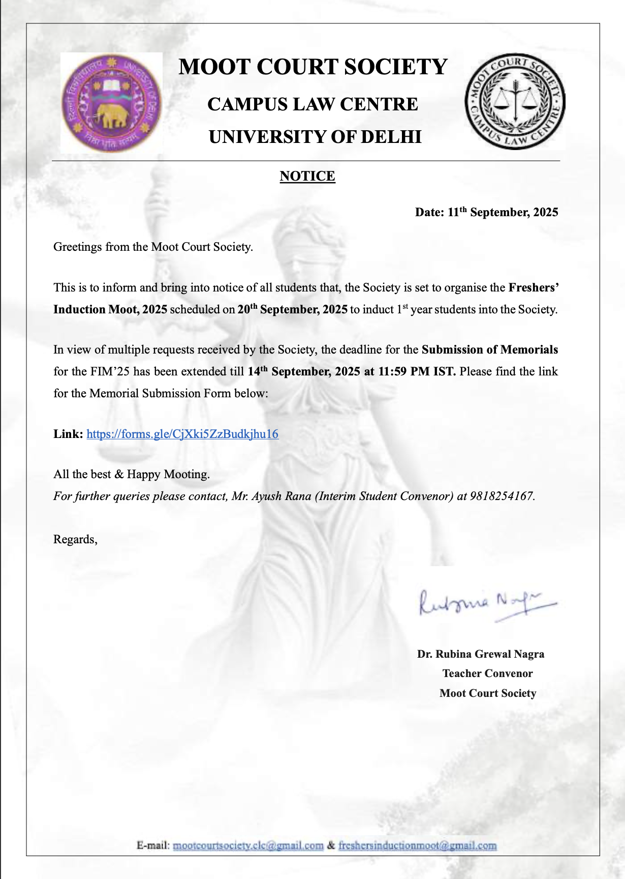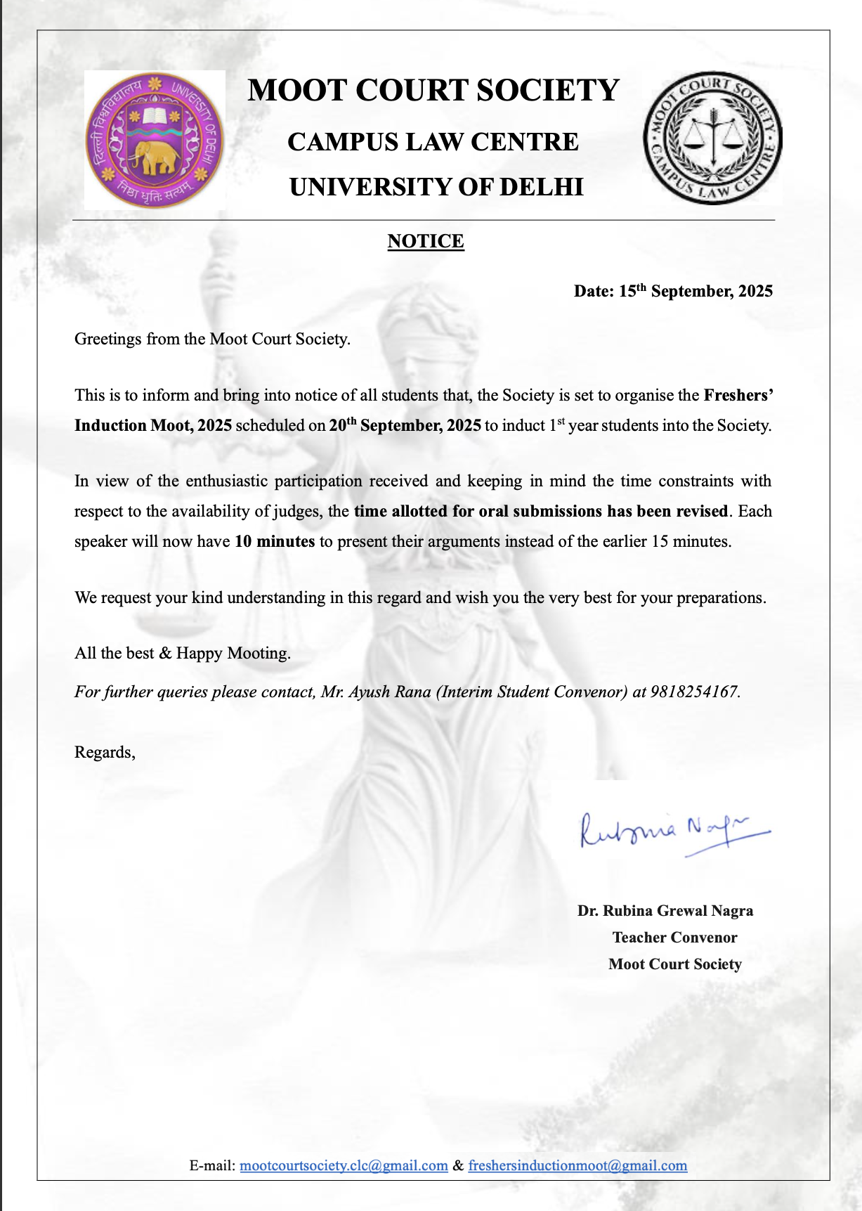 - Notice- Moot Court Society, Campus Law Centre, University of Delhi.