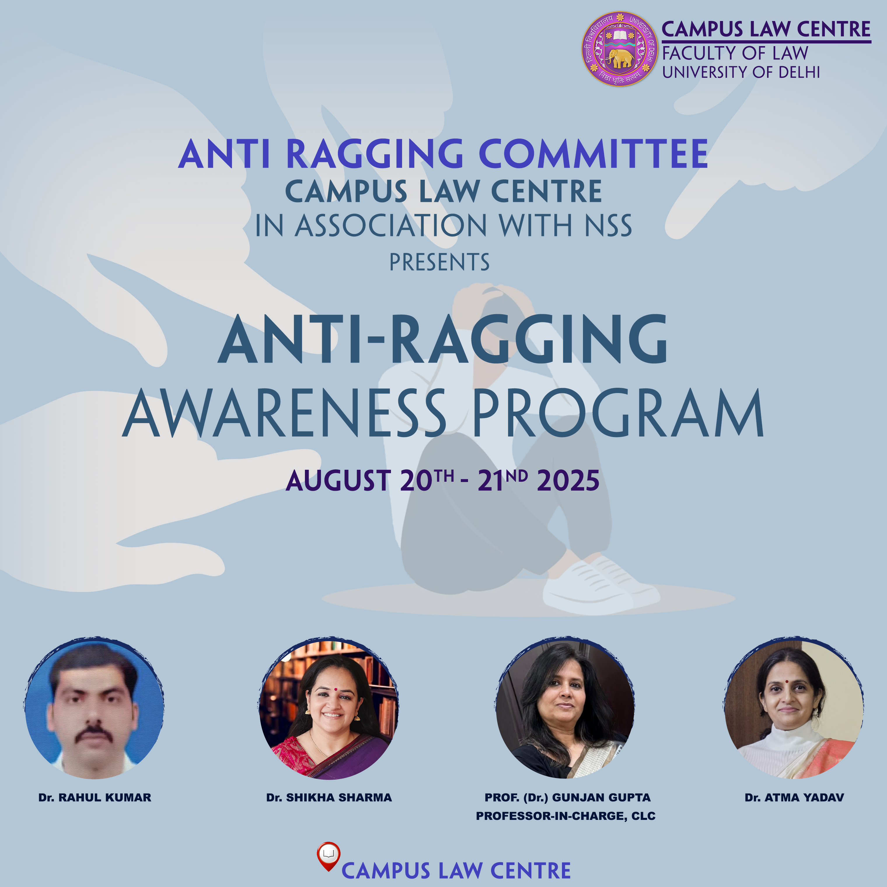 - Anti- Ragging Awareness Programme on August 20-21, 2025 at Campus Law Centre.